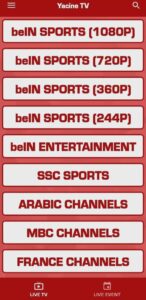 - دعم لمجموعة كبيرة من القنوات: يوفر تطبيق yasin tv live خيارات عديدة لمشاهدة القنوات المحلية و الدولية و الخيارات و يمكن للمستخدمين الاستمتاع بمشاهدة مختلف انواع البرامح و الافلام و المسلسلات.